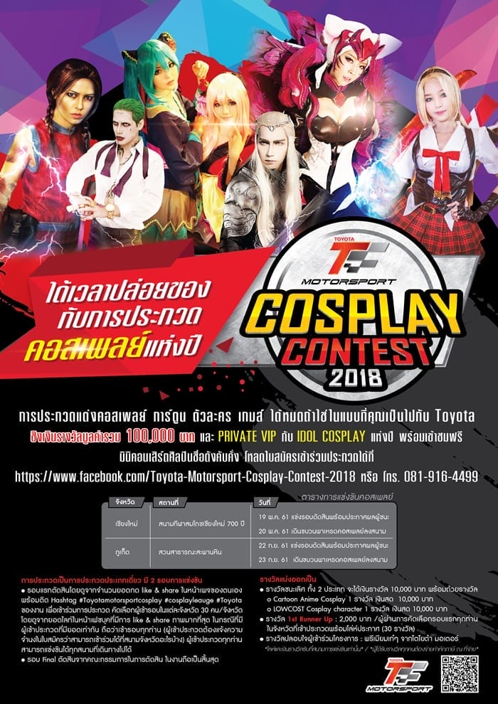 ขอเชิญชาวคอสเข้าร่วมประกวดคอสเพลย์แห่งปี TOYOTA MOTORSPORT COSPLAY CONTEST 2018