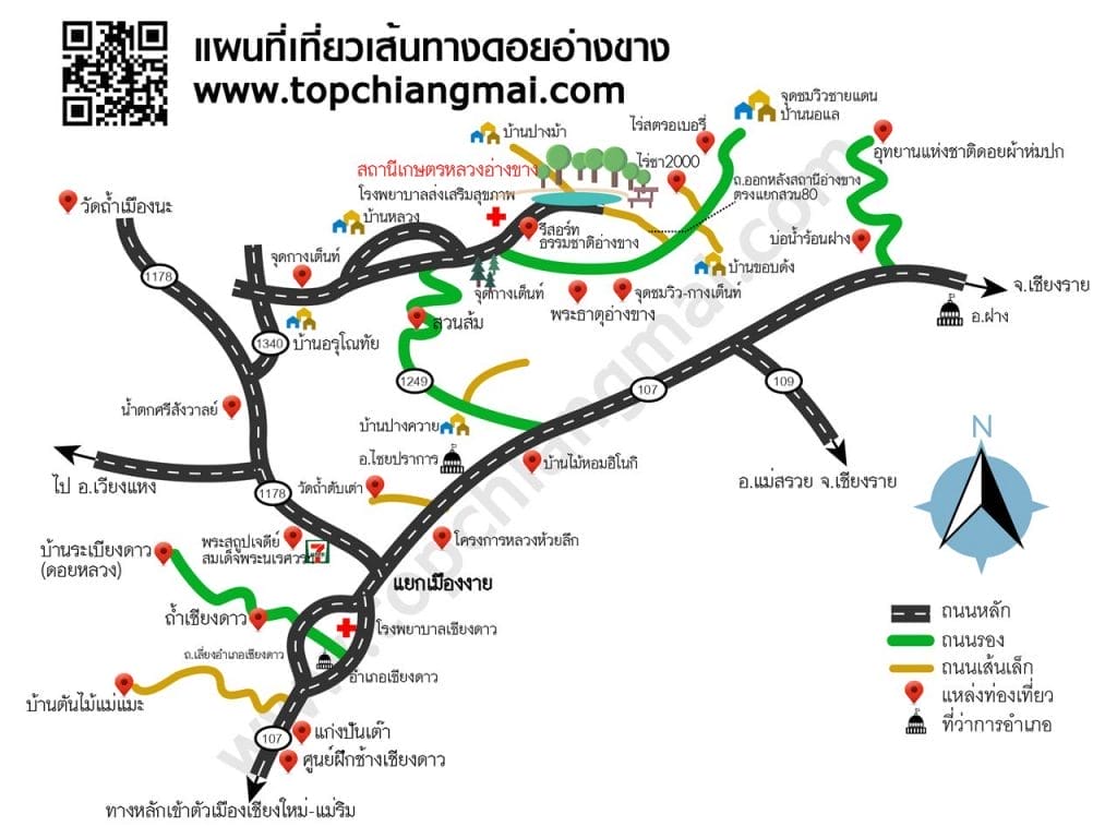 แผนที่เส้นอ่างขางนี้เน้นแสดงให้เห็นแหล่งท่องเที่ยวที่มีอยู่ตามเส้นทางอำเภอเชียงดาวไปดอยอ่างขาง เป็นสถานที่หลักๆ ที่นักท่องเที่ยวนิยมไปกัน เพื่อนำไปจัดทริปตามความเหมาะสมกันครับ พระเอกของแผนที่นี้ก็คือสถานีเกษตรอ่างขาง