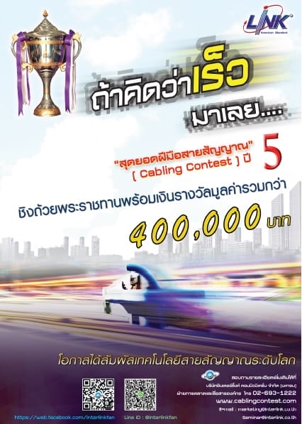 ทั้งนี้ผู้ที่สนใจสามารถสมัครเข้าร่วมโครงการได้ที่ www.cablingcontest.com