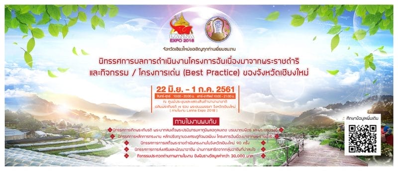 ภายในงานพบกับนิทรรศการเทิดพระเกียรติ พระบาทสมเด็จพระปรมินทรมหาภูมิพลอดุลยเดช และพระบรมวงศานุวงศ์การเสด็จพระราชดำเนินทรงงานในจังหวัดเชียงใหม่ของพระบาทสมเด็จพระปรมินทรมหาภูมิพลอดุลยเดช บรมนาถบพิตร นิทรรศการหลักการทรงงาน หลักของปรัชญาเศรษฐกิจพอเพียง โครงการอันเนื่องมาจากพระราชดำริ กิจกรรมและโครงการเด่น ( Best Practice) ของจังหวัดเชียงใหม่ รวมทั้งได้รวบรวมแหล่งเรียนรู้ งานโครงการ อันเนื่องมาจากพระราชดำริ ทั้งงานวิจัย การส่งเสริมและพัฒนาอาชีพ ผ่านการสาธิตจากกลุ่มอาชีพที่น่าสนใจ อีกทั้งเชิญร่วมสนุกกับกิจกรรมการประกวดภาพถ่าย “Like and Share” ชิงรางวัลมูลค่ากว่า 30,000 บาท สำหรับผู้เข้าร่วมชมนิทรรศการ/ ร่วมกิจกรรมภายในงาน รับของที่ระลึกฟรี!