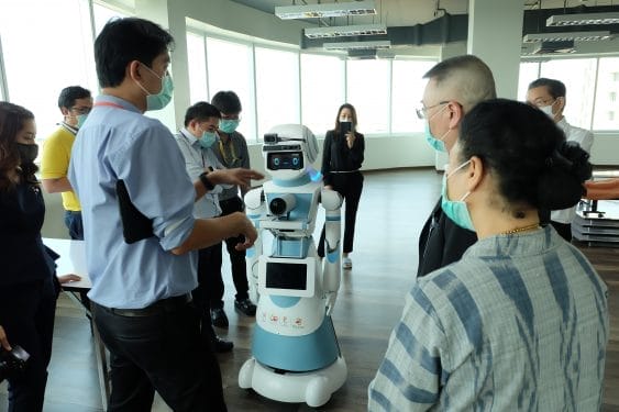 ดร. อภิรักษ์ หุ่นหล่อ คณะเทคโนโลยีสารสนเทศและการสื่อสาร มหาวิทยาลัยมหิดล นักวิจัยโครงการสนับสนุนข้อมูลวิจัยเชิงลึกด้านเชื้อไวรัสโคโรนา 2019 (COVID – 19) สำนักงานคณะกรรมการส่งเสริมวิทยาศาสตร์ วิจัยและนวัตกรรม (สกสว.) เปิดเผยว่า ปัจจุบันในประเทศไทยมีการพัฒนาหุ่นยนต์เพื่อใช้ทางการแพทย์ โดยความร่วมมือจากสถาบันวิทยาการหุ่นยนต์ภาคสนาม (FIBO) มหาวิทยาลัยเทคโนโลยีพระจอมเกล้าธนบุรี (มจธ.) ร่วมมือกับบริษัท ฟอร์มส์ ซินทรอน (ประเทศไทย) จำกัด, บริษัท ซิสโก้ ซีสเต็มส์ (ประเทศไทย) จำกัด และบริษัท แอ็ดวานซ์อินฟอร์เมชั่นเทคโนโลยี จำกัด (มหาชน) ร่วมกันพัฒนาหุ่นยนต์ทางการแพทย์ ขณะนี้สามารถใช้งานได้แล้ว 3 รูปแบบ ประกอบด้วย