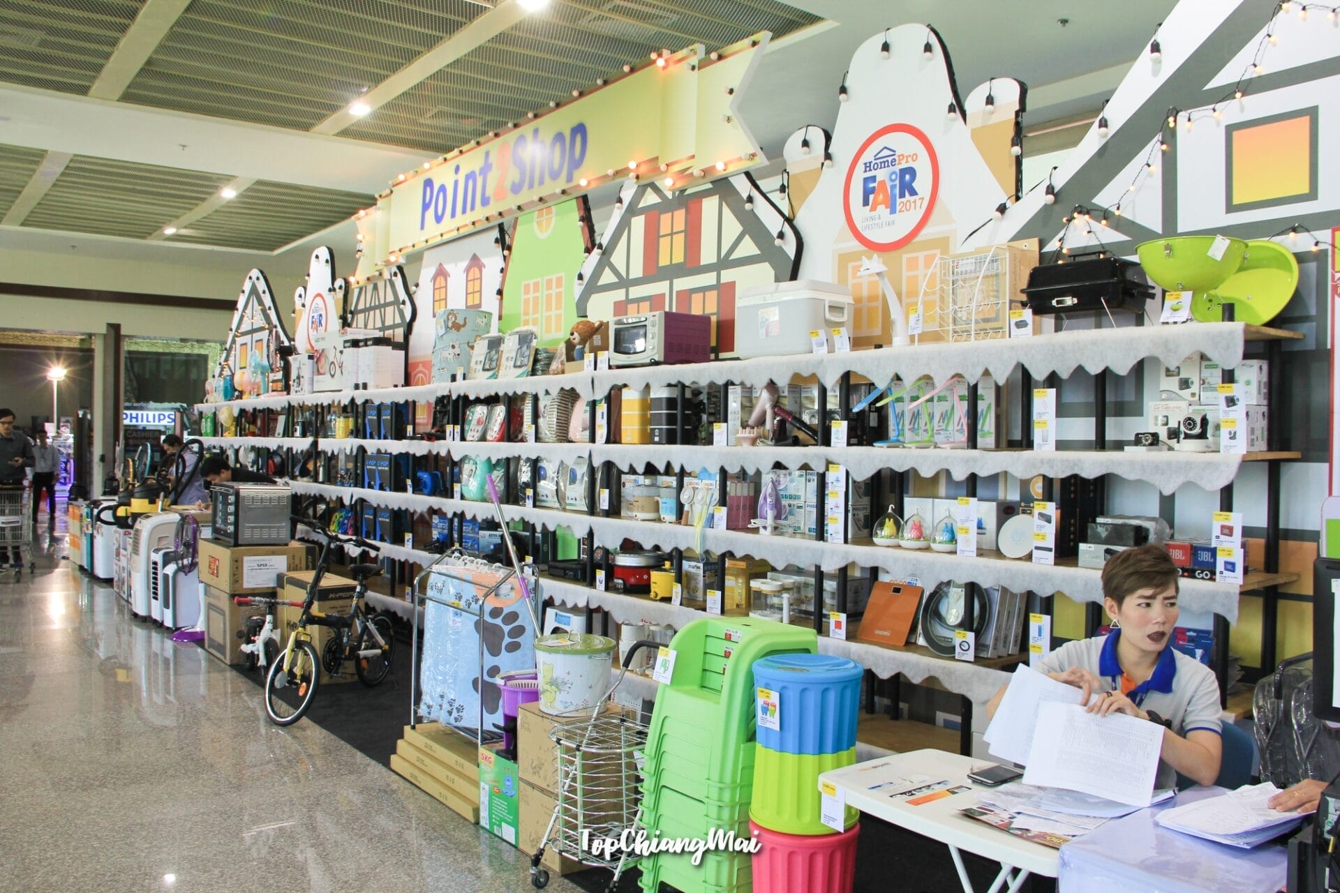1.ช้อป ภายในงาน HomePro Fair 2017 มีสินค้ามากมาย อาทิเช่น เครื่องใช้ไฟฟ้าหลากหลายแบรนด์ชั้นนำ เครื่องครัว เฟอร์นิเจอร์ สุขภัณฑ์ วัสดุซ่อมแซม อุปกรณ์เครื่องใช้ต่างๆ และที่ขาดไม่ได้ คือ ผลิตภัณฑ์ “ ดอยคำ ” ต้นกำเนิดจากโครงการพระราชดำริ ของ พระบาทสมเด็จพระเจ้าอยู่หัว รัชกาลที่ ๙ และ “ ดอยตุง ” โครงการจาก มูลนิธิแม่ฟ้าหลวง