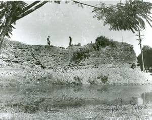 เมื่อพระยามังรายโปรดให้สร้างเชียงใหม่เป็นศูนย์กลางของอาณาจักรล้านนา พระองค์โปรดให้สร้างเมืองเป็นรูปสี่เหลี่ยมผืนผ้า กว้าง 900 วา ยาว 1000 วา และโปรดให้ขุดคูรอบเวียง เข้าใจว่ากำแพงเมืองในสมัยนี้ยังเป็นกำแพงที่ทำด้วยดิน เนื่องจากการสร้างกำแพงด้วยอิฐนั้นมีหลักฐานว่า สร้างในสมัยพระเมืองแก้ว ที่พระองค์โปรดให้ ปั้นดินจักก่อเมฆเวียงเชียงใหม่และ ในสมัยพระเจ้ากาวิละ เมื่อพระองค์กลับมาซ่อมแซมเมืองเชียงใหม่ ทรงโปรดให้…สร้างรั้วแปลงเวียงก่อเมกปราการ กำแพงเชิงเทิน หอป้อมบานประตูหื้อแน่นหนา มั่นคง ขุดร่องคือเอาน้ำเข้า เพื่อให้เป็นที่ขามแข็งทนทานแก่ข้าศึก…