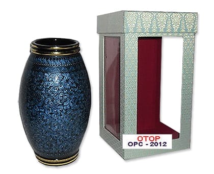 สินค้าOTOP แจกันดอกไม้ขูดเพนท์ขอบทอง