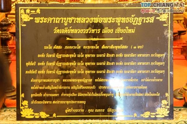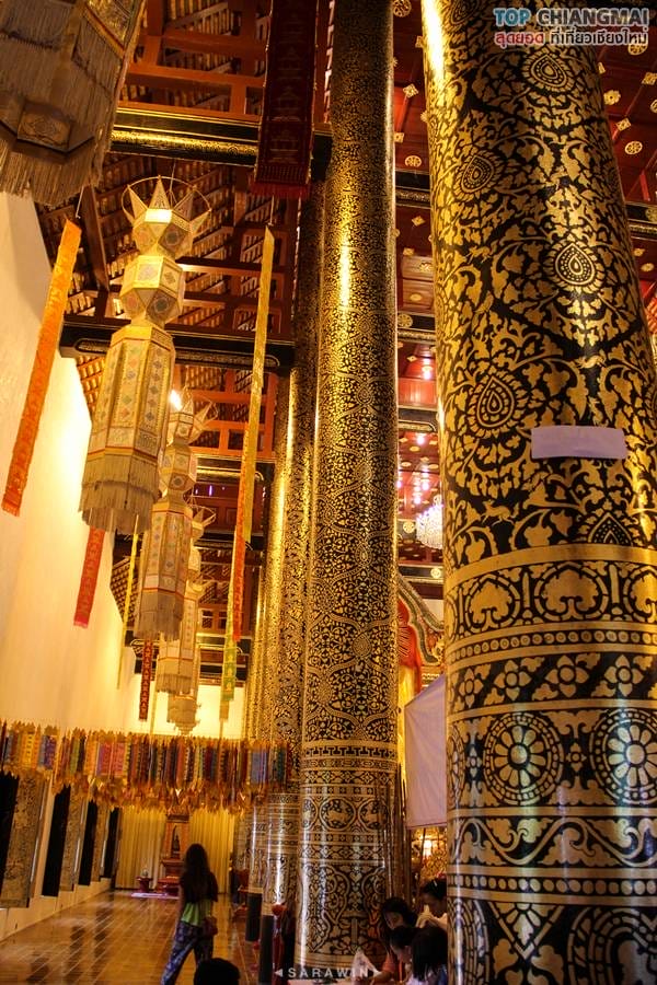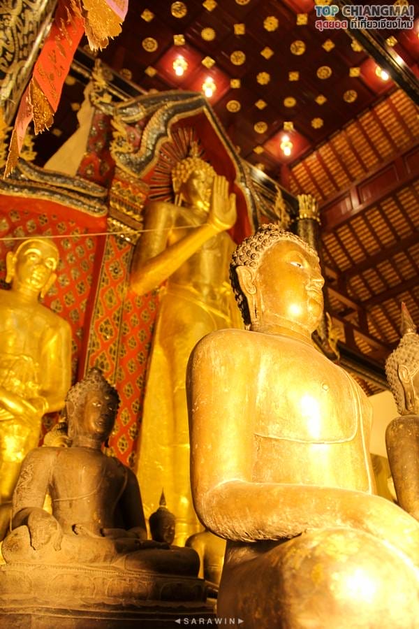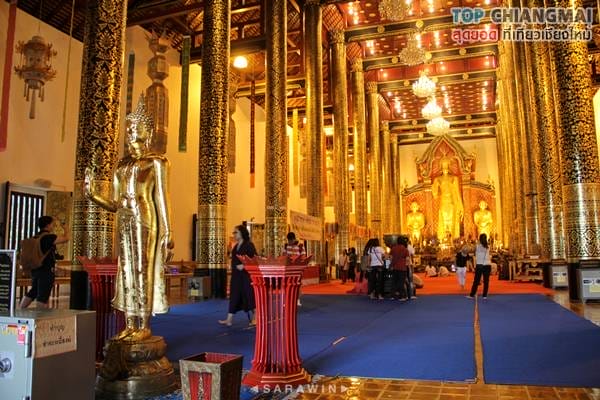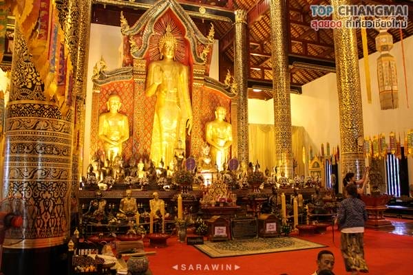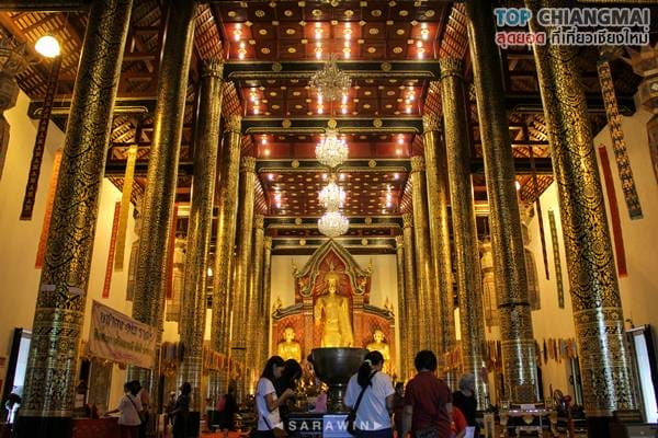 สถานที่สำคัญจุดแรกที่ท็อปเชียงใหม่จะพาเพื่อน ๆ เข้าไปเที่ยวชมก็คือพระวิหารหลวง เป็นสถาปัตยกรรมทรงล้านนาประยุกต์ สร้างครั้งแรกโดยพระนางติโลกะจุดา พระราชมารดาของพระเจ้าสามฝั่งแกน พร้อมทั้งได้หล่อพระอัฏฐารสพุทธปฏิมาประธาน และพระอัครสาวกโมคคัลาน์ สารีบุตร ประดิษฐานไว้ในพระวิหาร เมื่อกาลเวลาผ่านไป วิหารก็ได้ผุพังลงมา ก็เกิดการบูรณะปฏิสังขรณ์เรื่อยมา จนปัจจุบันถือว่าเป็นสร้างครั้งที่ 6 โดยพระเจ้าอินทวิชยานนท์ เจ้าผู้ครองเมืองเชียงใหม่