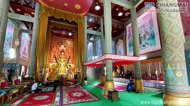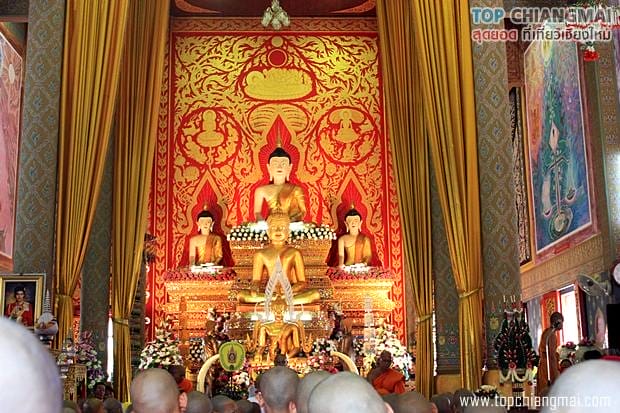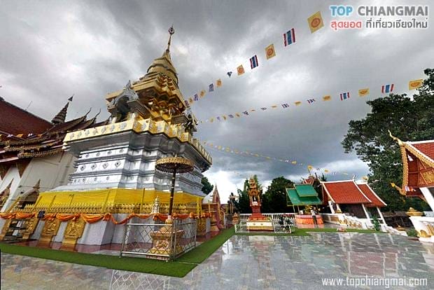 - พระเจดีย์ ซึ่งเป็นที่บรรจุพระเกศาธาตุ อายุร่วม 1,000 ปี เป็นเจดีย์องค์ใหญ่สูง สวย สง่า สร้างครอบองค์เก่าไว้ ภายในมีพระบรมสารีริกธาตุอันเป็นปูชนียวัตถุอันศักดิ์สิทธิ์ เป็นที่สักการะเคารพของชาวอ าเภอดอยสะเก็ด ทุกปีในเดือน 8 เป็ง (ขึ้น 15 ค่ า เดือน 6 ใต้) ทางวัดจะอันเชิญพระบรมสารีริกธาตุ ลงมาจากที่ประดิษฐานให้พุทธศาสนิกชนสรงน้ า และจะมีปรากฏสิ่งอันเป็นปาฏิหาริย์ทุกครั้ง นอกจากนั้น ยังมีพระพุทธรูปบูชาทองค า พระพุทธรูปทองส าริด อีกจำนวนมากเพื่อให้พุทธศาสนิกชน ได้สักการบูชาสืบไป