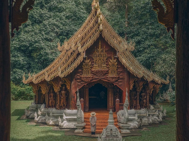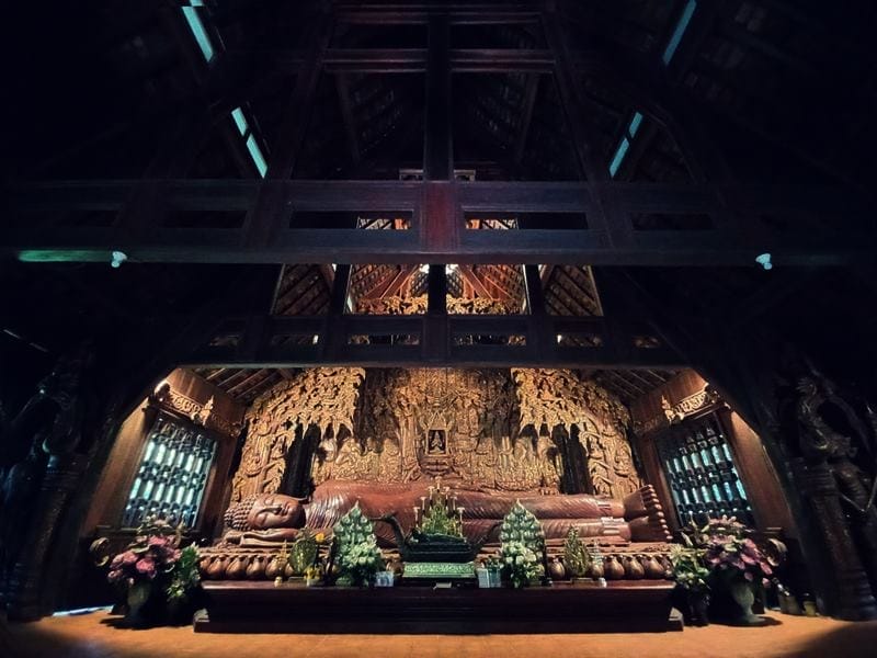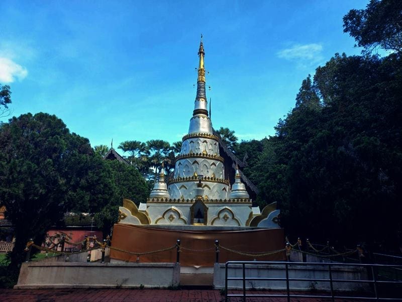 ภายในวัดมีอาคารไม้ และเจดีย์บรรจุพระเกศาธาตุของสมเด็จพระสัมมาสัมพุทธเจ้า