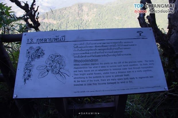 ทางเดินแคบๆ ระหว่างทางจะพบดอกกุหลาบพันปี