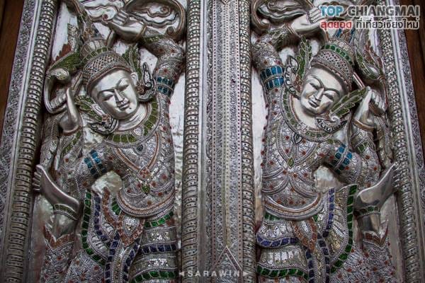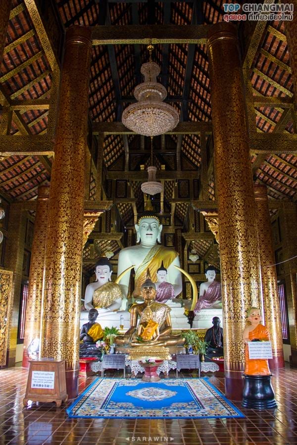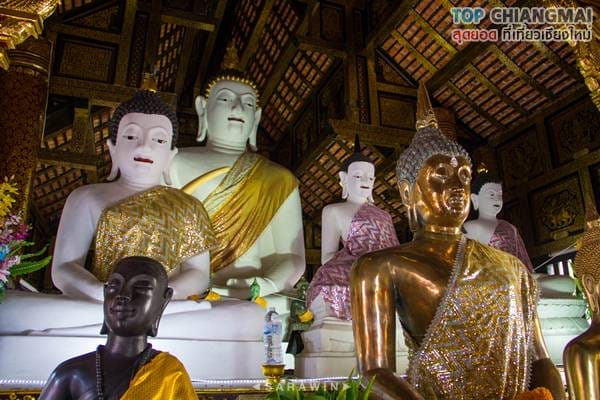 วัดอินทขีลนี้มีพระพุทธรูปที่สำคัญที่อยู่ดูเมืองเชียงใหม่มาเป็นเวลานานคือ หลวงพ่อขาว ซึ่งเป็นพระพุทธรูปแบบล้านนา มีพระพักตร์อิมเอิบดุจพระจันทร์ ในวันเพ็ญที่เปี่ยมล้นไปด้วยความเมตตา ทำให้ผู้ที่มากราบไหว้บูชาได้รับความสุขสงบใจ และทำให้เกิดความรู้สื่กที่มั่นใจ และมีความหวังที่จะประกอบการงาน เป็นประดุจหนึ่งว่า ท่านจงทำดีเถิด ทำงานเถิด แล้วจะประสบผลสำเร็จ สมความปรารถนาทุกประการ ปัจจุบันถ้าได้มากราบไหว้องค์หลวงพอขาวในวิหารทรงล้านนาที่สร้างด้วยไม้ทั้งหลังจะเห็นว่าวิหารนั้นสร้างออกไปกลางถนนเล็กน้อย ที่จริงนั้นเดิมทีถนนไม่ได้ผ่านบริเวณนี้ แต่พอวัดร้างไปทางราชการจึงสร้างถนนผ่านวัดแห่งนี้จึงไม่มีรั้วรอบกำหนดขอบเขตให้เห็นอย่างชัดเจน