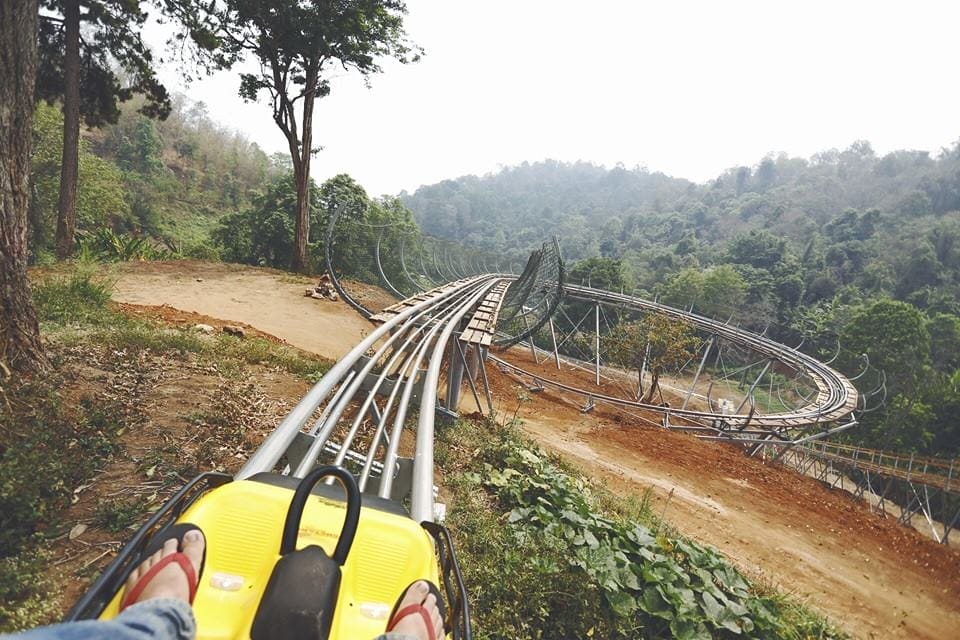 รถไฟรางไม้ หรือในต่างประเทศเรียกกันว่าจังเกิ้ลโคสเตอร์ บนเนื้อที่ 14 ไร่ ระยะทางประมาณ 1 กิโลเมตรสถานที่แห่งเดียวในเชียงใหม่ กลางธรรมชาติที่โป่งแยง ซิปไลน์ แอนด์ จังเกิ้ล โคสเตอร์ในอำเภอแม่ริม